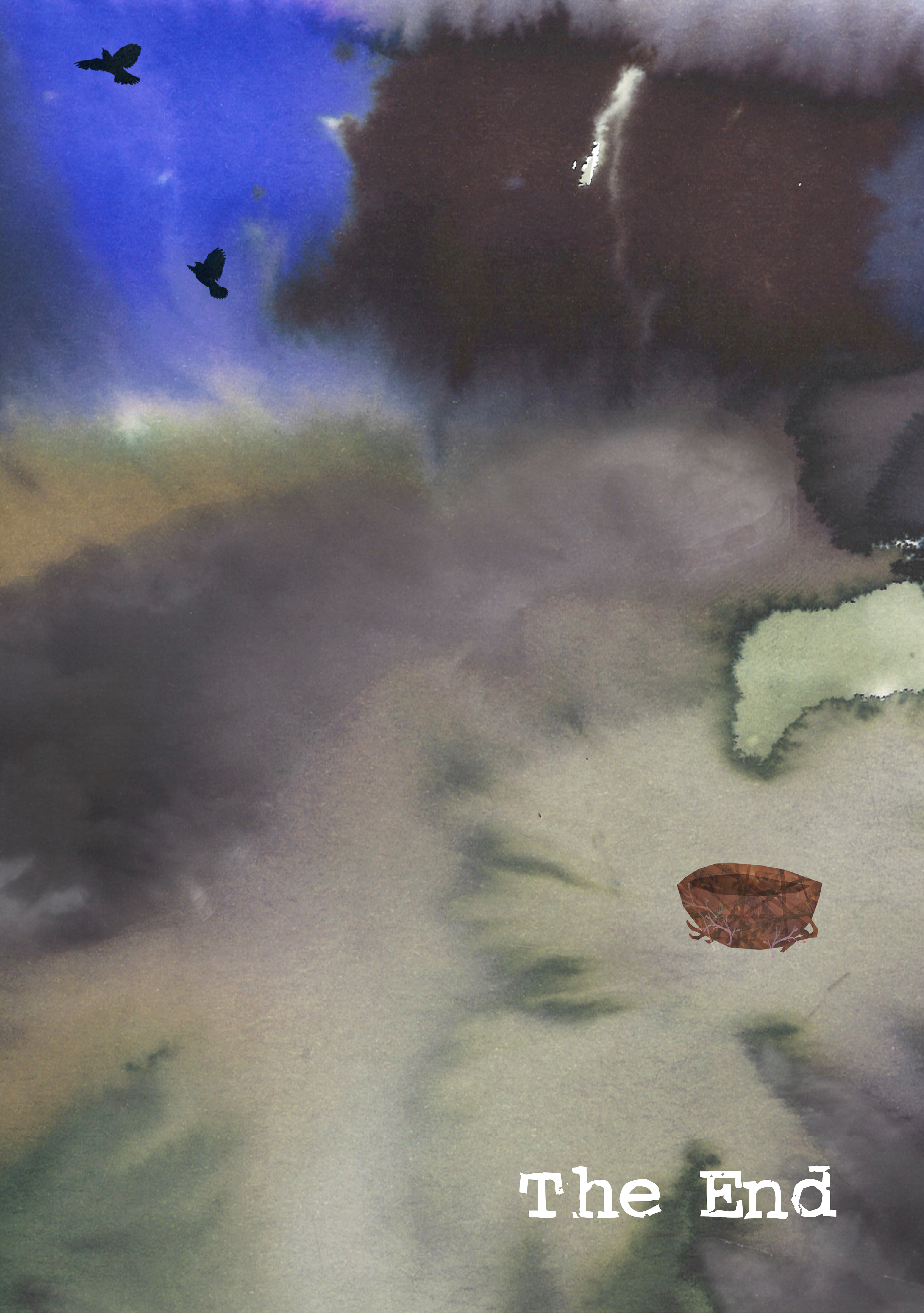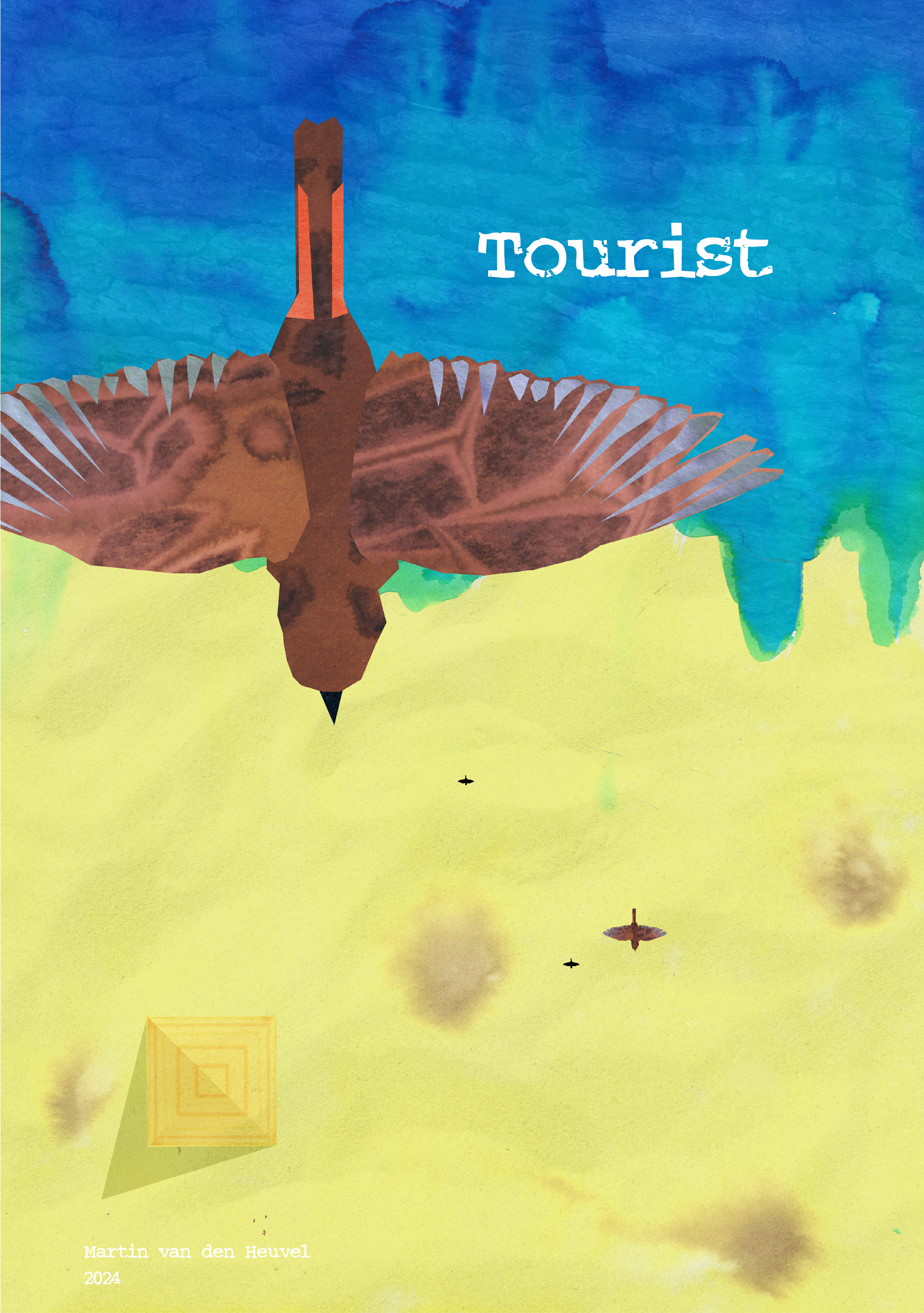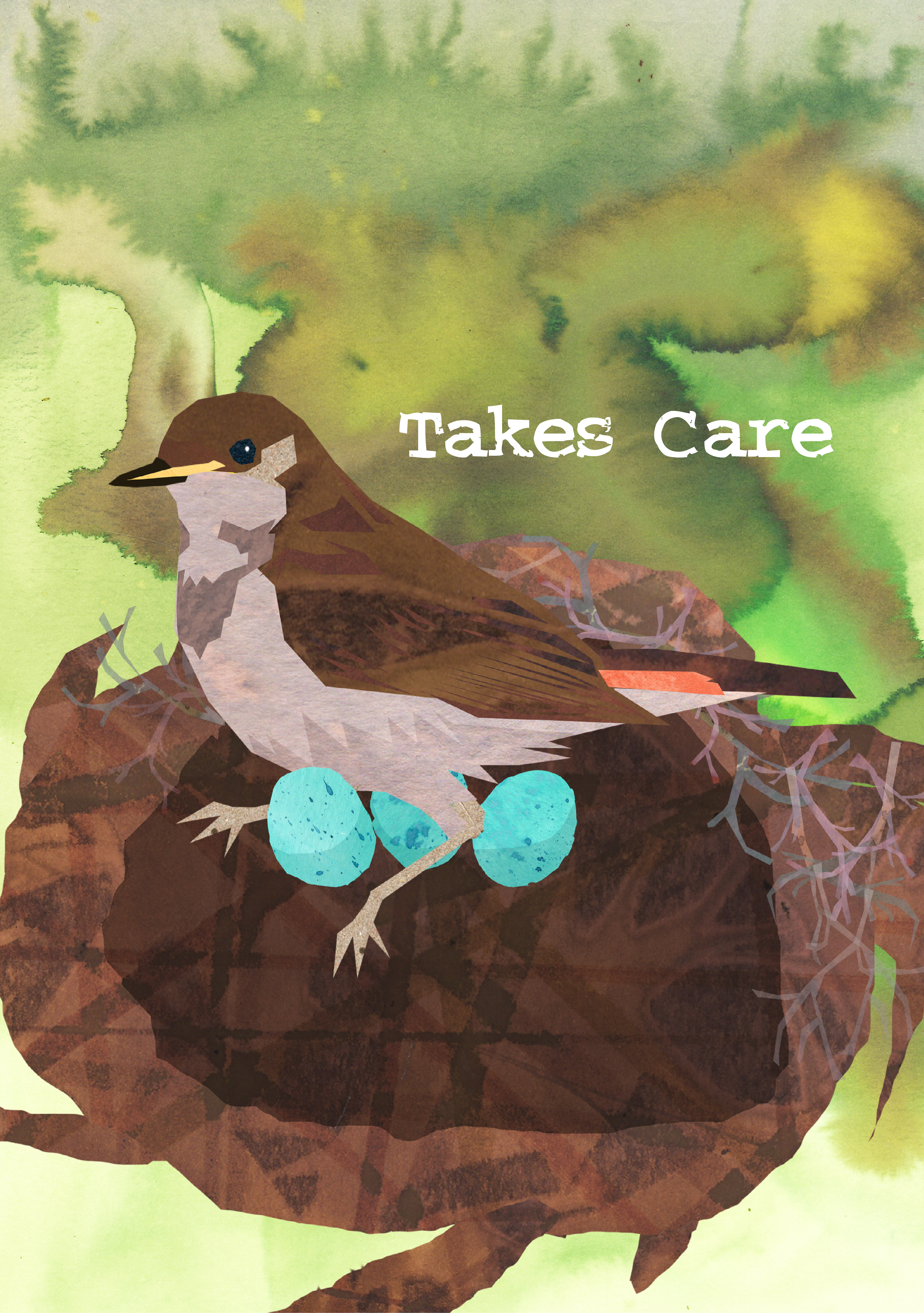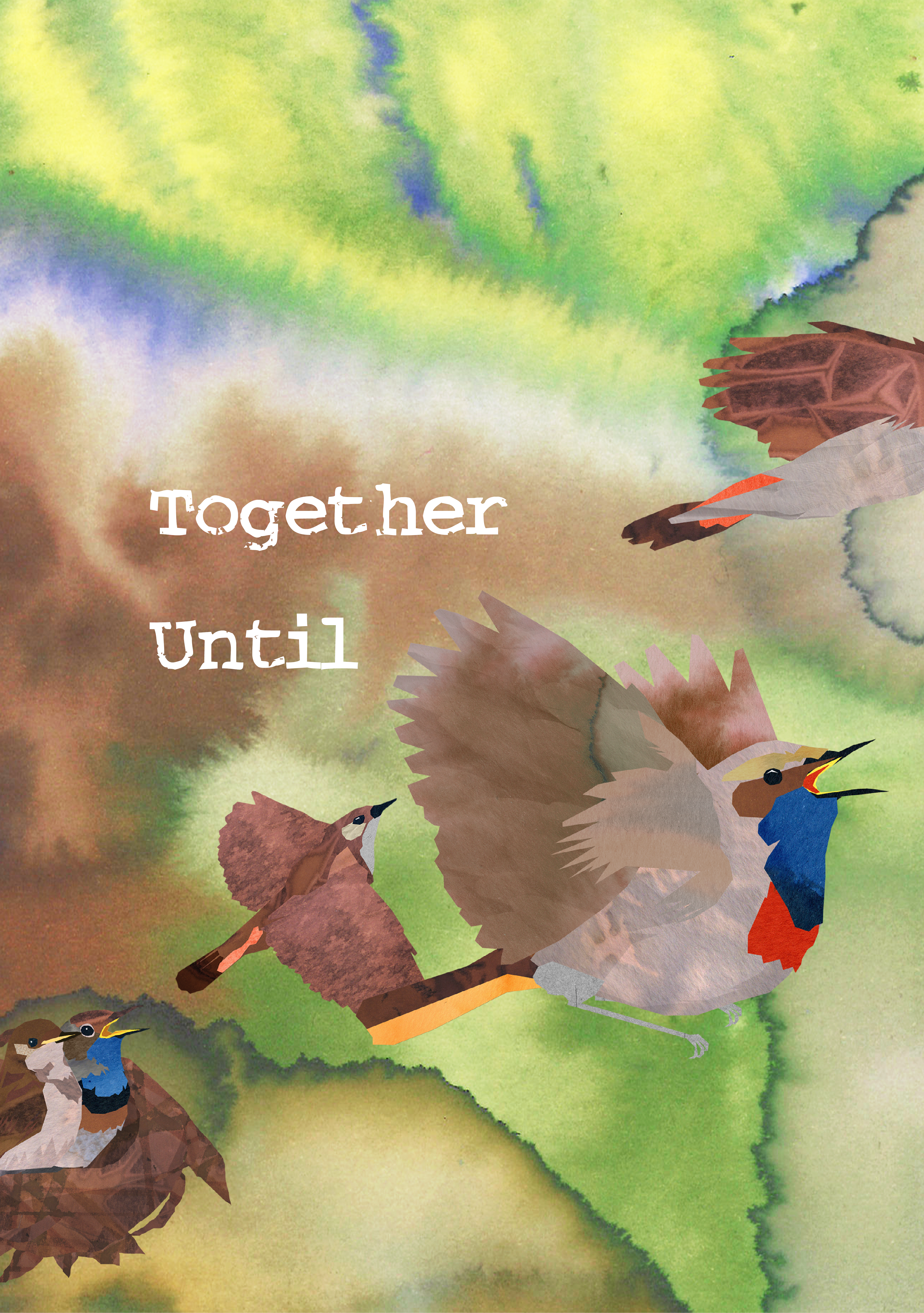 The technique used is a digital collage of paper stained by ecoline; a process that requires embracing randomness to create texture by guiding the drying process. The result is a visually striking, multi-layered piece of illustration.
