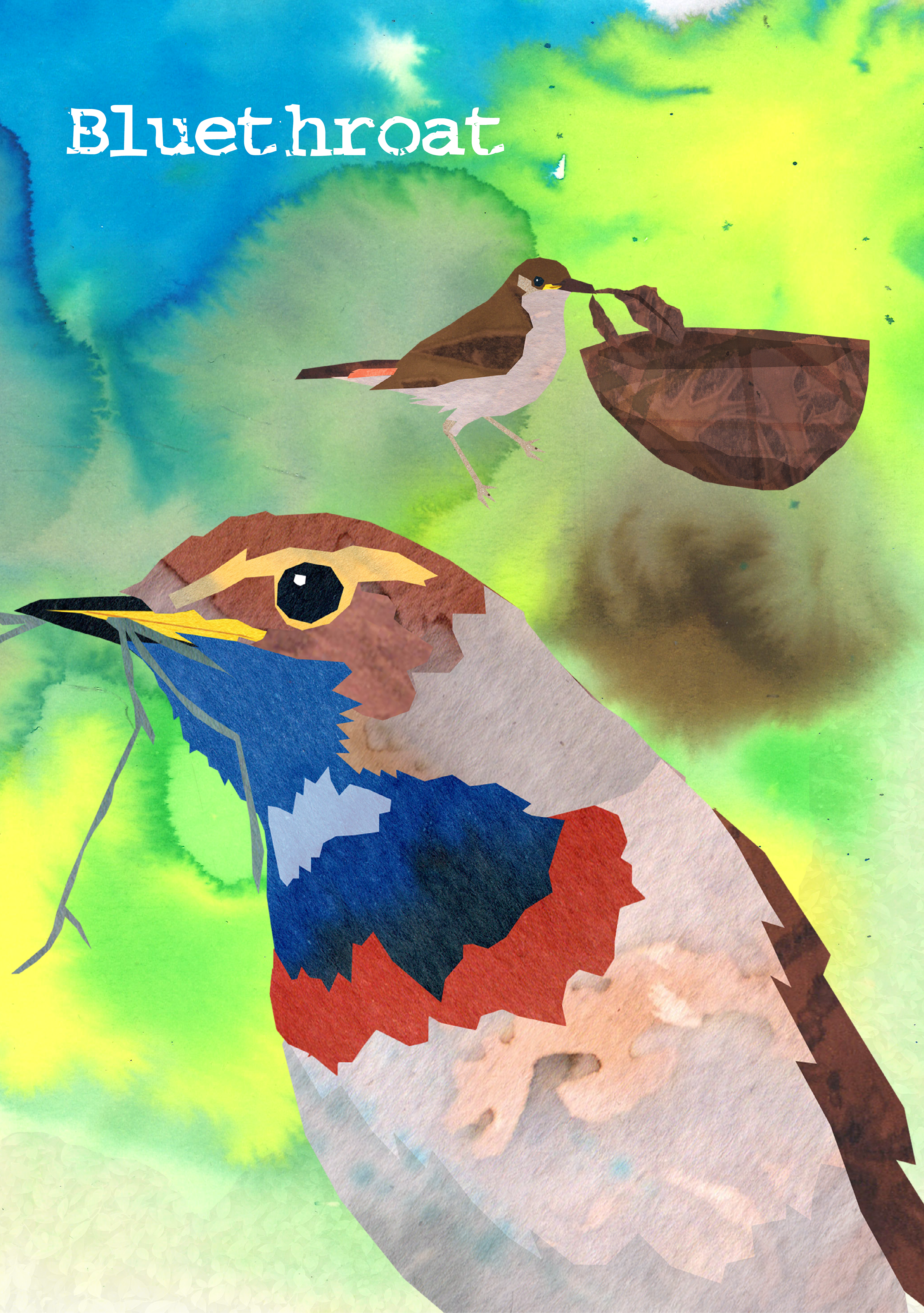 A colorful booklet about the Bluethroat, a bird native to the Netherlands that migrates to northern Africa in winter.